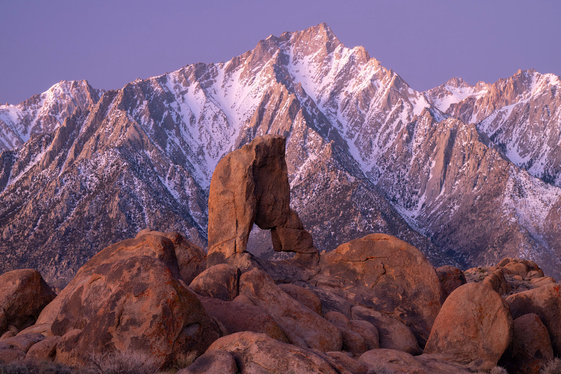 An arch frames the distant Sierra, linking foreground and horizon in a quiet, balanced gesture of form and scale. Photo © copyright by Joseph Rossbach.
