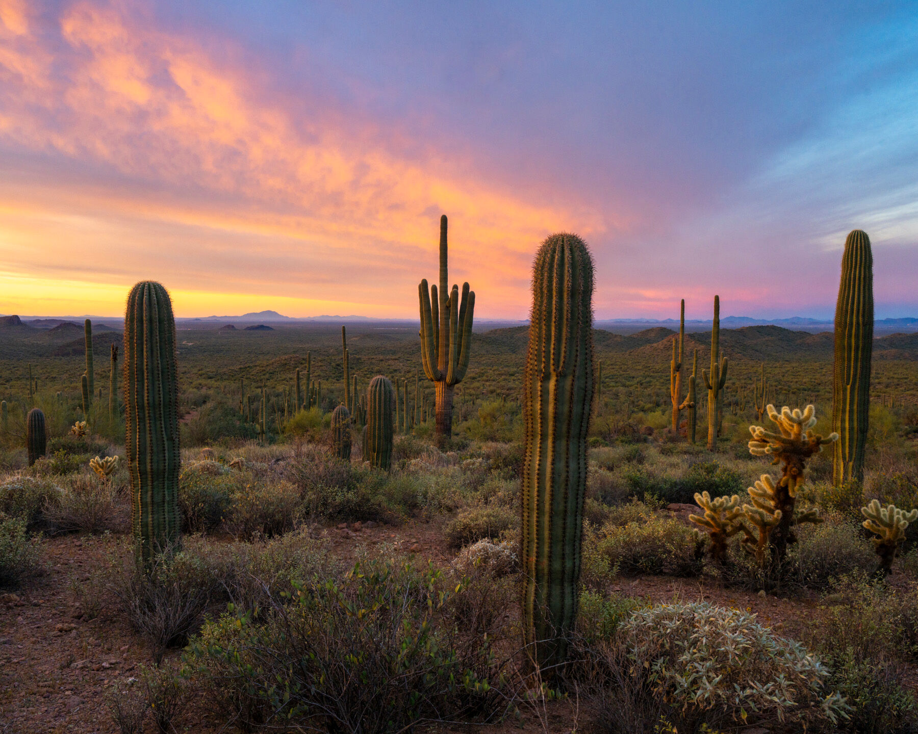Across the open desert, form is defined by distance—where land, vegetation, and horizon settle into a quiet relationship of space and separation. Photo © copyright by Joseph Rossbach.